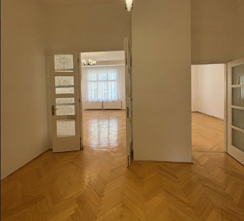 A lakás jelenlegi elosztása 2 szoba + hall + külön konyha, amely klasszikus polgári hangulatot biztosít. A tágas terek és a jól alakítható alaprajz lehetővé teszi, hogy az ingatlan akár nappali + 2 hálószoba + 2 fürdőszobás elrendezésre is átalakítható legyen, így családi otthonnak vagy kiadásra is kiváló választás lehet.