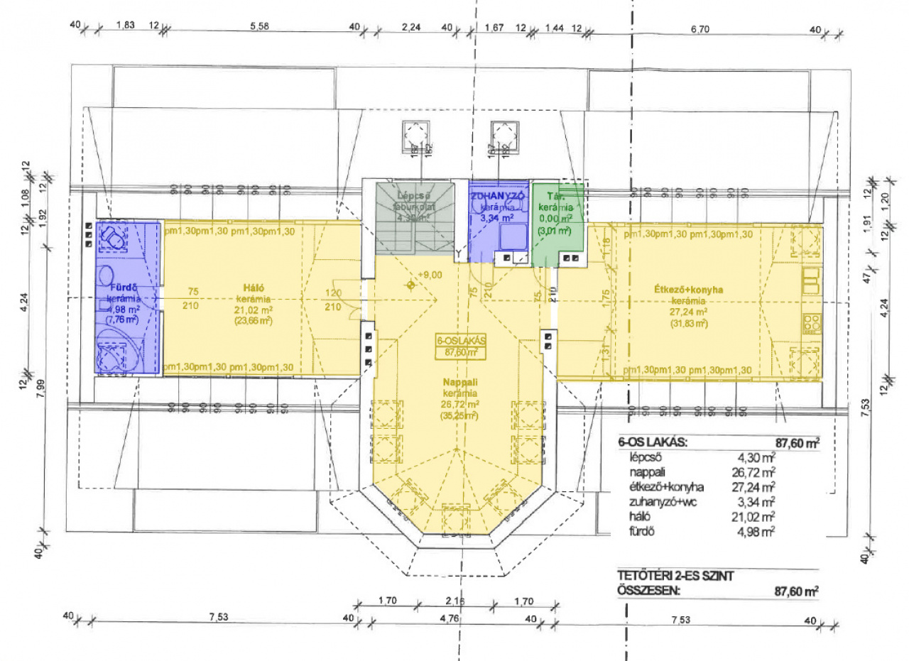 A lakás nettó 87,6 nm a társasházi külön lapon feltüntetett bruttó méret: 114nm