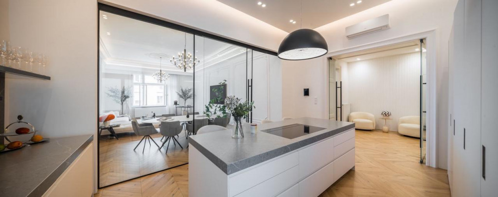 Luxus lakás eladó a V. kerületben, Budapest szívében, a Parlament közvetlen közelében, a Hold utcában. Ez a csodálatos otthon egy szép, liftes házban található, a 3. emeleten. A lakás teljeskörűen felújított, és minden részletében igényességre vall. A lakás 200 négyzetméteres, és tágas nappalival rendelkezik, valamint 3 külön bejáratú hálószoba áll rendelkezésre, ami kiváló lehetőséget nyújt a privát szférára. Az ingatlanban minden háló szobához külön fürdőszoba tartozik, ami a kényelmet és a praktikumot szolgálja. A lakás rendkívül világos és hangulatos, amely időtlen eleganciát kölcsönöz az otthonnak. Egyedi beépített szekrények és egyedi konyhabútor található a lakásban, amelyek praktikus tárolási lehetőséget biztosítanak. Az ingatlant magas minőségű felújítás jellemzi, és luxuskivitelben került kialakításra. Minden részletre figyelve, a legjobb anyagok és műszaki megoldások felhasználásával teremtették meg ezt a kivételes otthont. Ez a lakás ideális választás azoknak, akik luxuskörülmények között szeretnének élni a város szívében, közel a Szabadság térhez, és a Magyar Állami Operához! Ne hagyja ki ezt a ritka lehetőséget, és élvezze a belváros nyújtotta kényelmet és életstílust.
