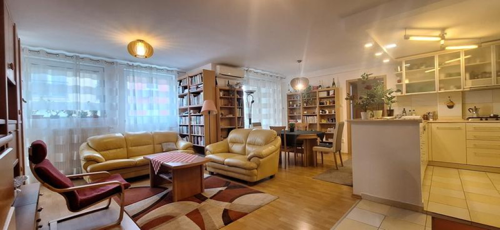 A 123 nm-es, első emeleti ingatlan ideális választás nagyobb családok számára is. A lakás elrendezése kiváló: amerikai konyhás nappali biztosítja a közös életteret, emellett 4 külön nyíló hálószoba áll rendelkezésre, így minden családtagnak jut saját tér.