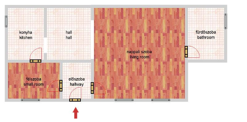 Elrendezés: nappali + 1 hálószoba + étkező