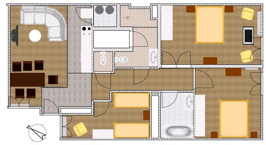 A tágas nappali mellett 3 külön nyíló hálószoba, 2 fürdőszoba, valamint külön WC szolgálják a kényelmet – így akár családoknak, akár befektetésre is remek választás.