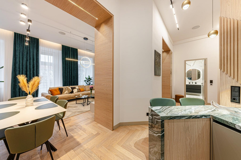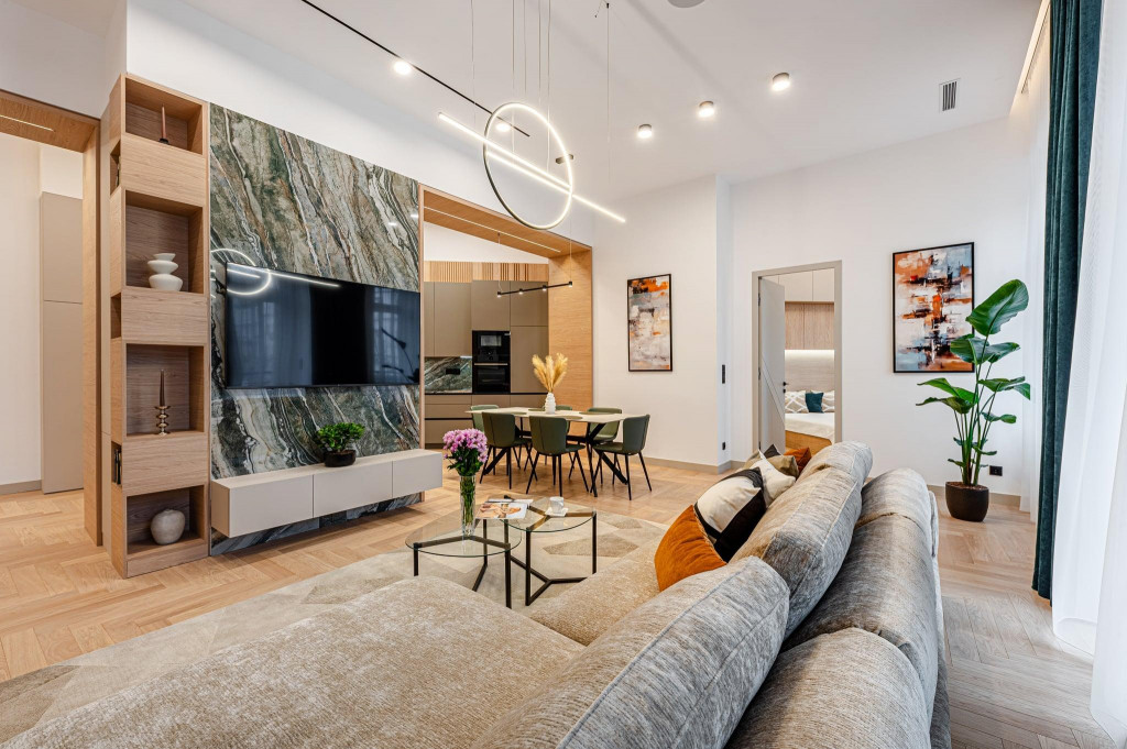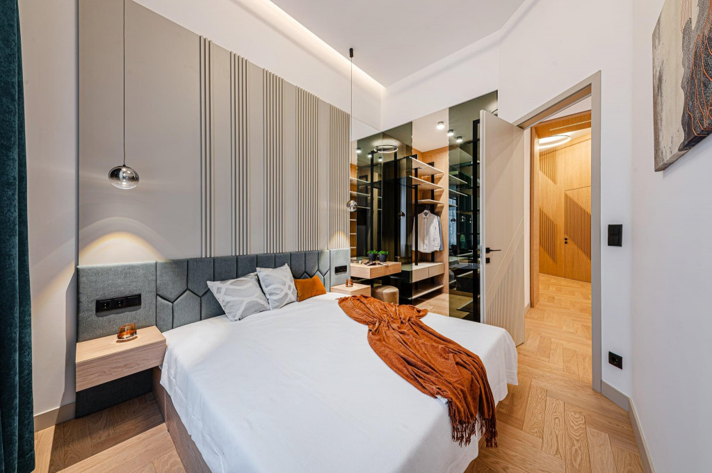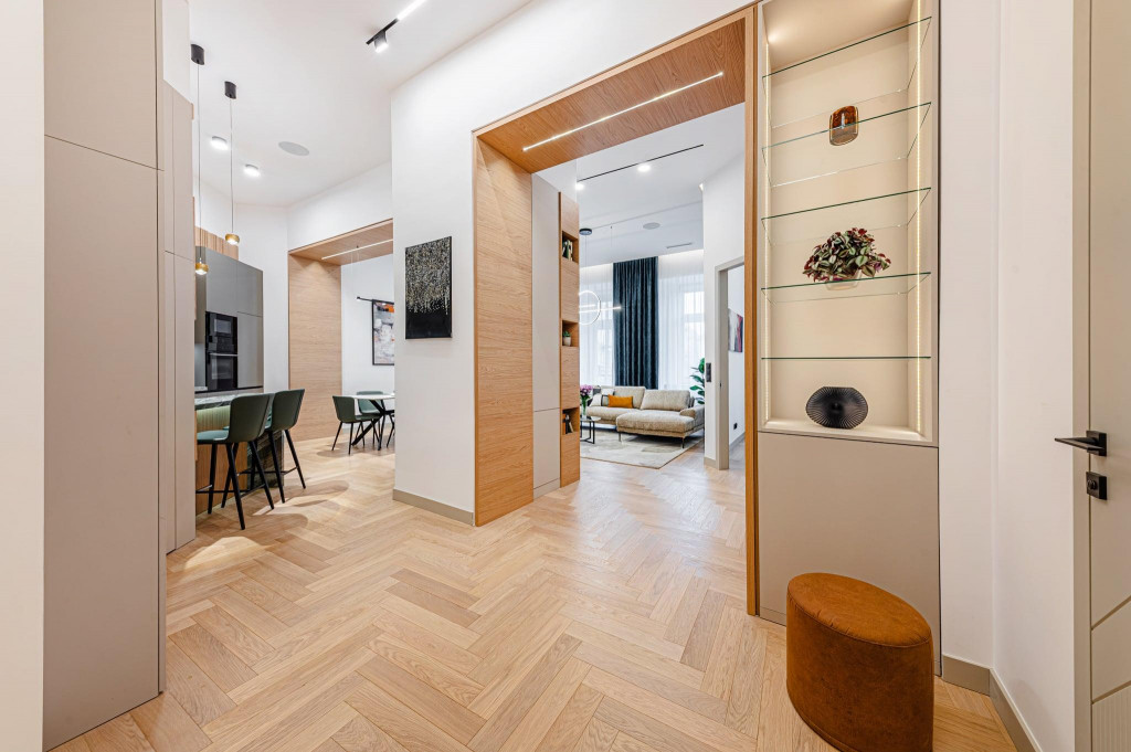 A belváros egyik legstílusosabb utcájában kínáljuk megvételre ezt a frissen elkészült, kifinomult eleganciát képviselő luxuslakást.