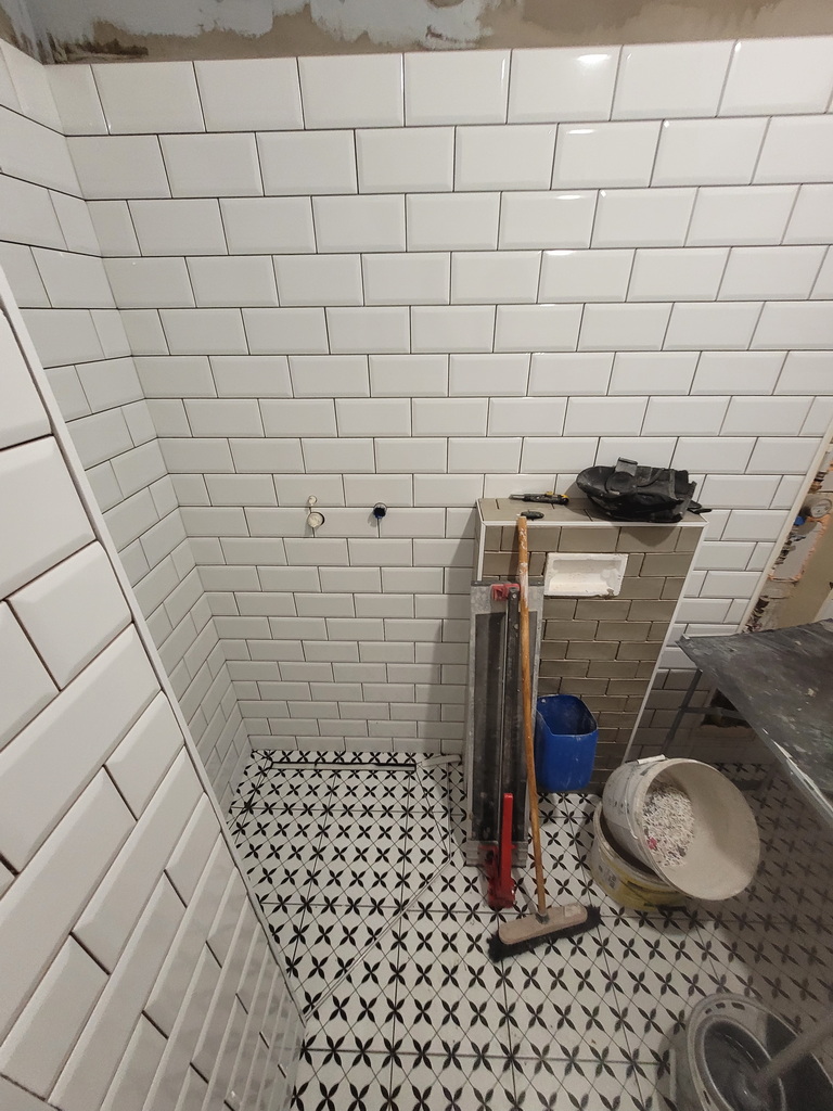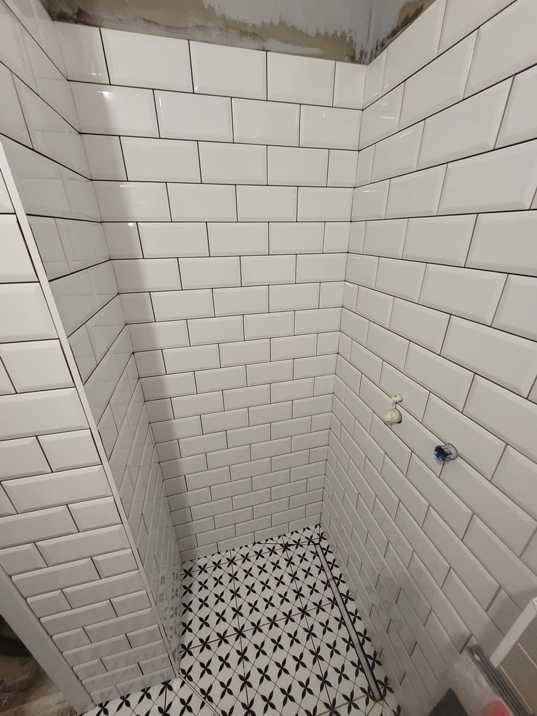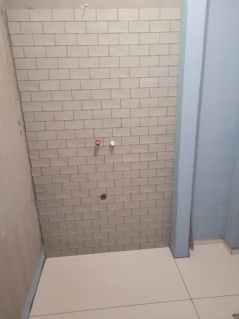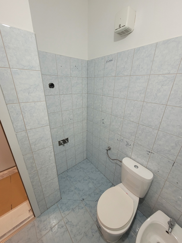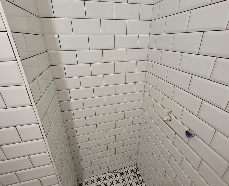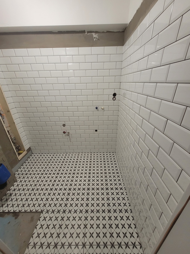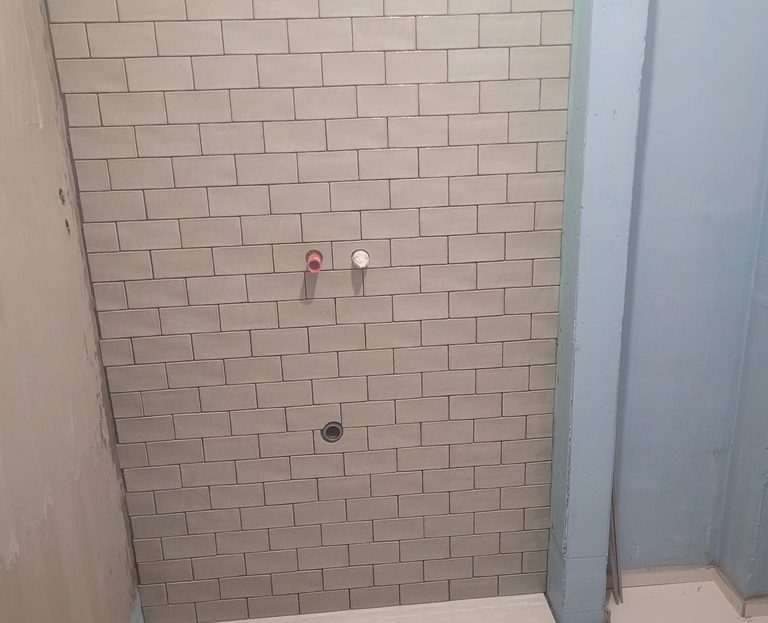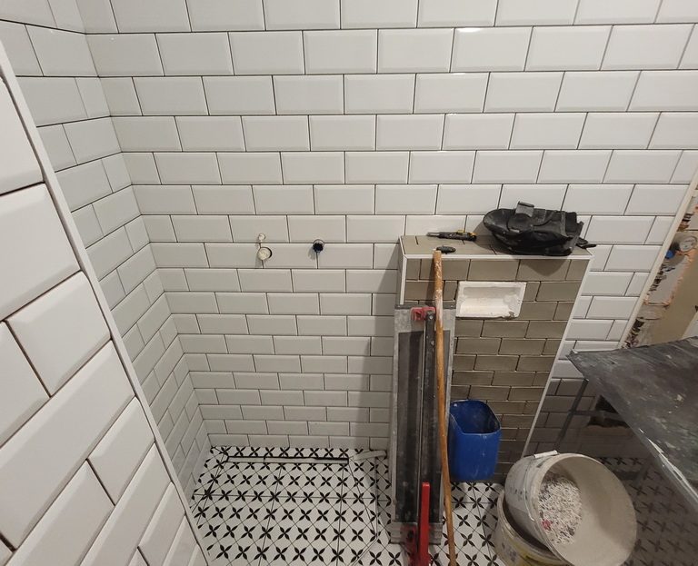 A projekt során a régi burkolatok és vízvezetékek teljes cseréje történt meg, beleértve a víz- és szennyvízhálózat újraépítését, a vízszigetelést, valamint az új fal- és padlóburkolatok elkészítését. A precíz lejtéskialakítás és a gondosan megtervezett vízelvezetés biztosította, hogy a perem nélküli zuhanykabin hosszú távon is problémamentesen működjön.