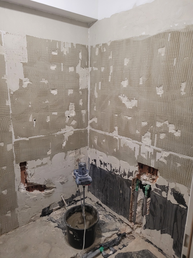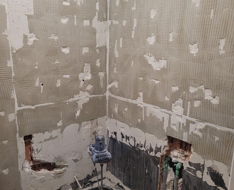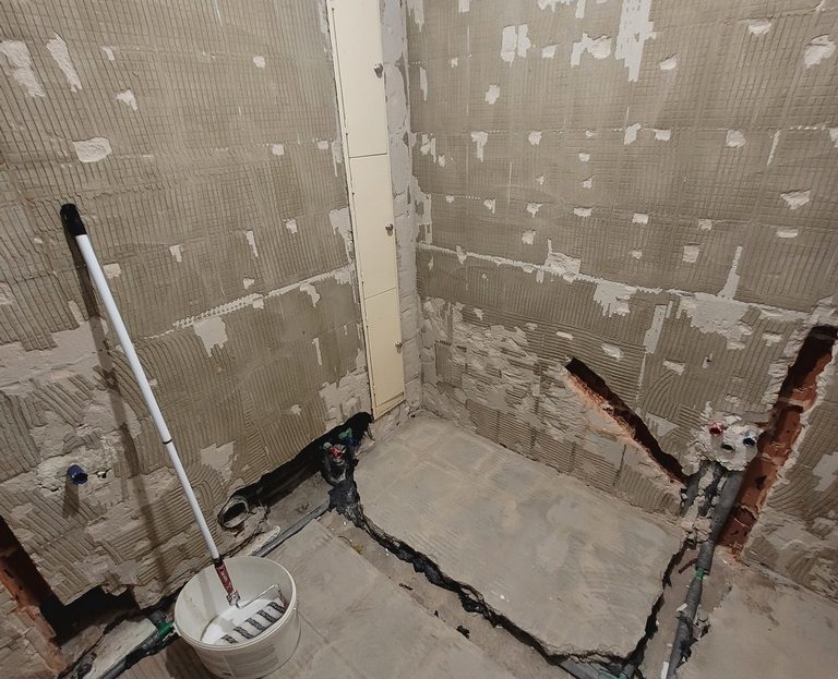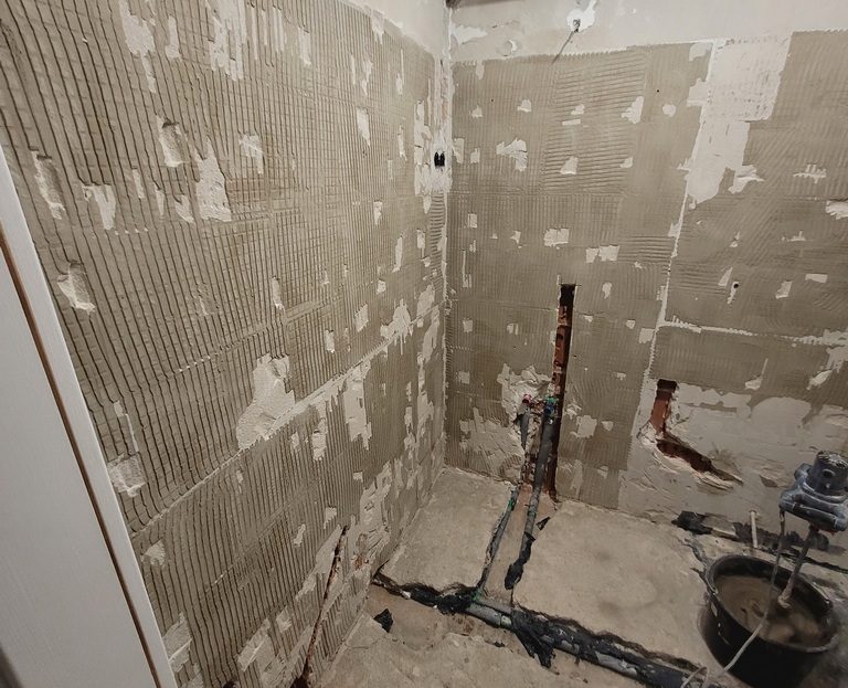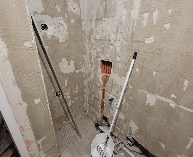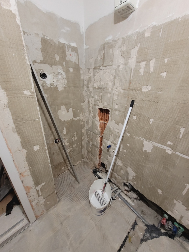 - Vízszigetelés és aljzatkiegyenlítés a zuhanykabin építéséhez