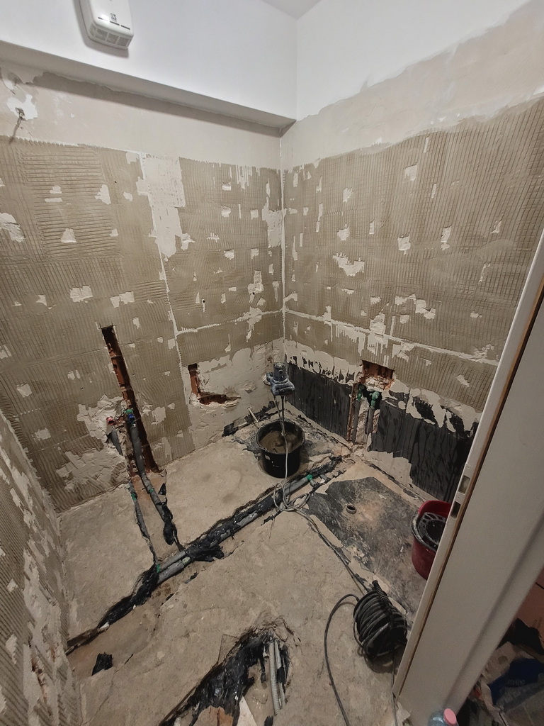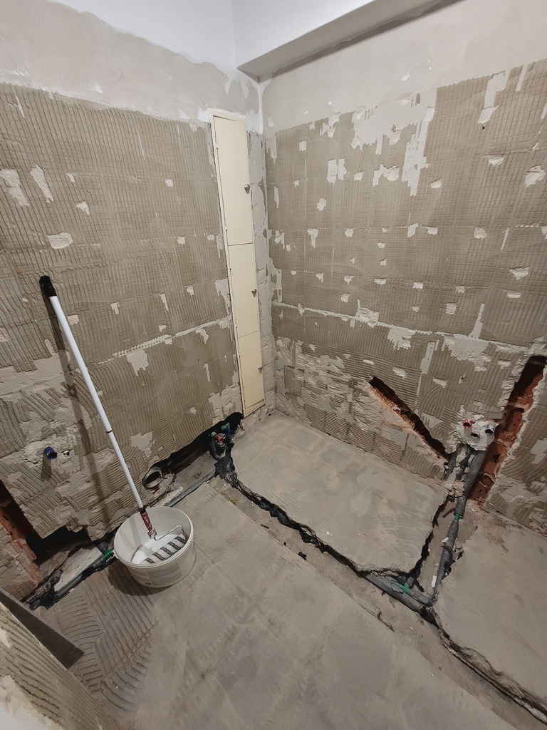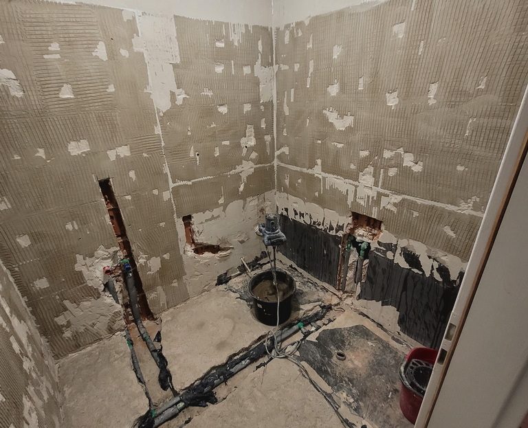 - Régi burkolatok, szaniterek és vezetékek bontása